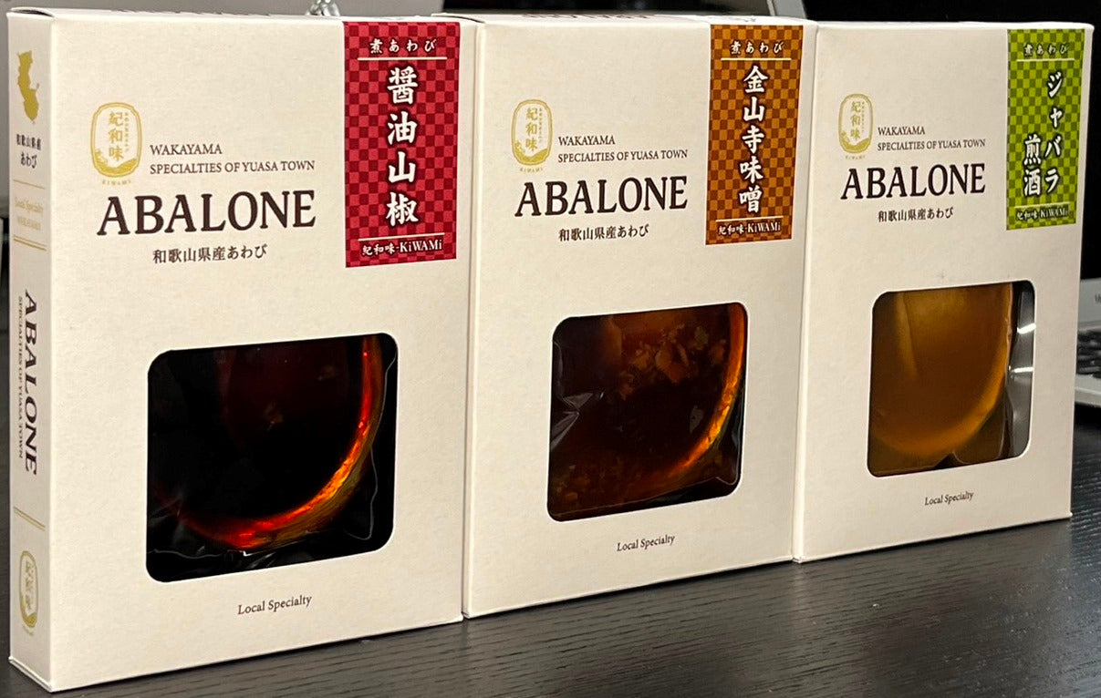 The large abalone in the 90g size (shell length of about 85mm-90mm) has been retorted to make it easier to provide to customers. Under the supervision of the head chef of Kata Onsen (spa) Hiina-no-yu Akama (Japanese inn), it is a gem that is particular about Wakayama ingredients.